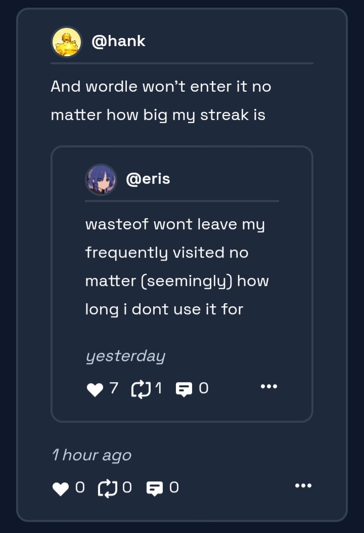 And wordle won't enter it no matter how big my streak is