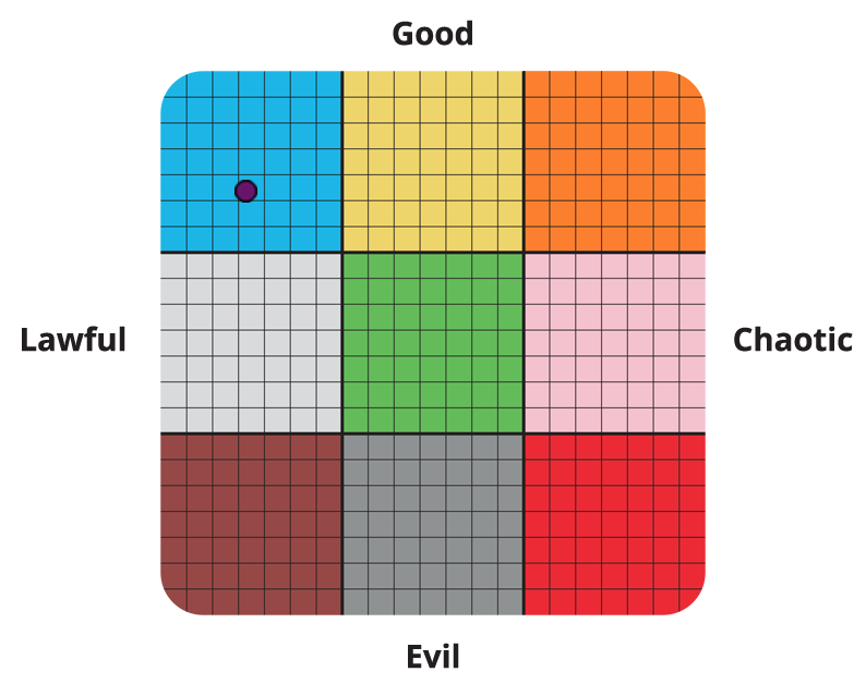 You are 64.2% good, tied between chaotic and lawful, making you neutral good.